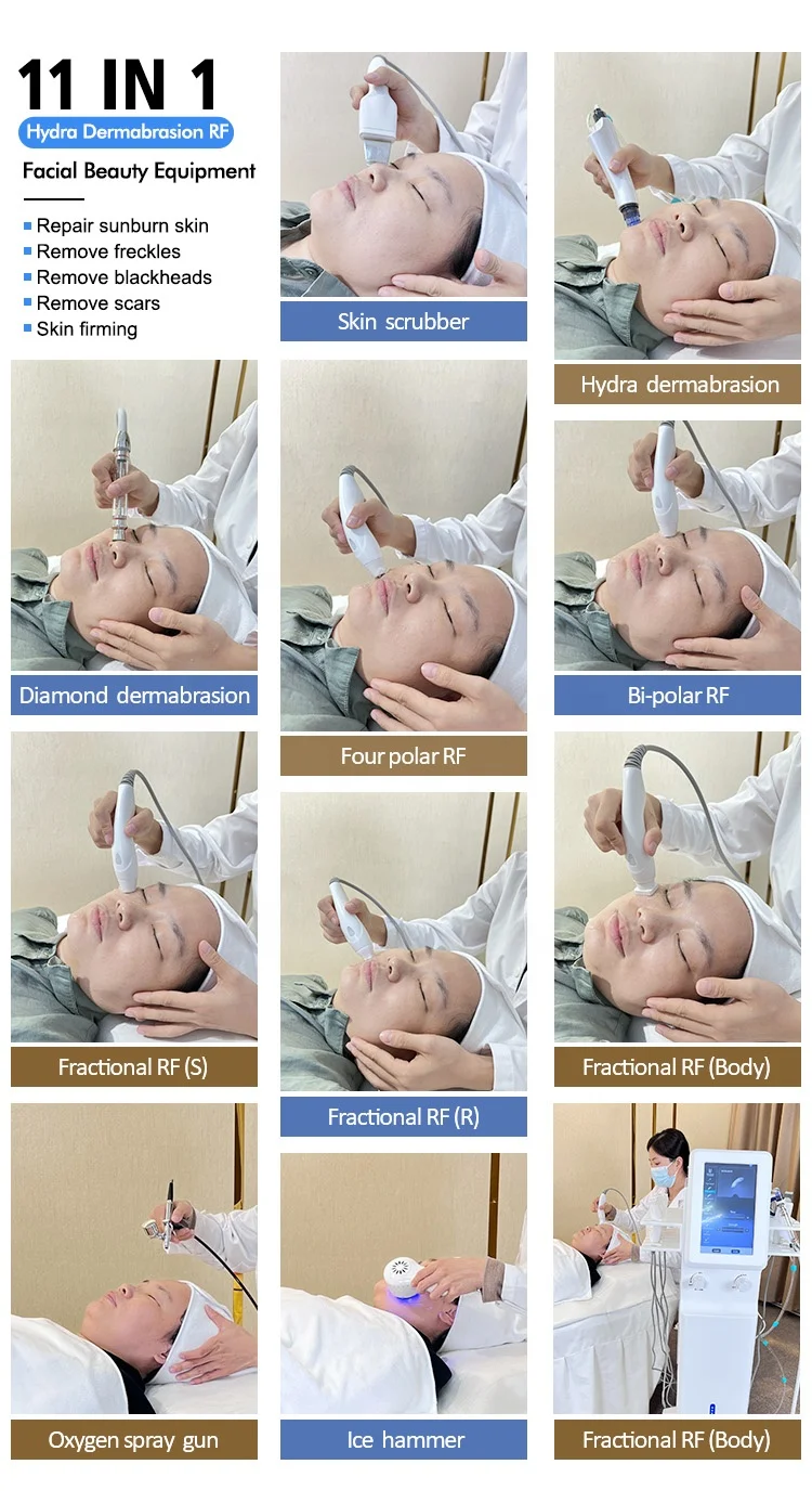 1.Deep cleaning,Oily skin improvement 2. Scar removal: all kinds of scars such as scar left by laser, burn and surgery etc 3. Acne: blain acne, scabby acne, allergic acne, papilla acne, improving the appearance of lipidic skin and acne pit. 4. Skin care: skin whitening and softening, facial lifting and tightening, eye bag and black eye circle removing, weary skin and gloom yellow skin improving 5. Wrinkle reduction: reduce wrinkles around canthus, furrow 6. To improve allergic skin 7. Water replenishing to skin Clean: Deep cleaning, clear skin stratum corneum, minimally invasive scar, clearing blackhead. Wash: Deep cleaning dirt, clean skin Water supply: supply sufficient water molecules to skin while cleaning. Rehabilitation: Improve dull skin, shrink pores, smooth skin, repair skin cells
